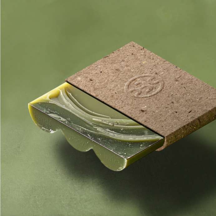 A circular design system transforming organic and paper waste into biodegradable packaging and natural soaps.