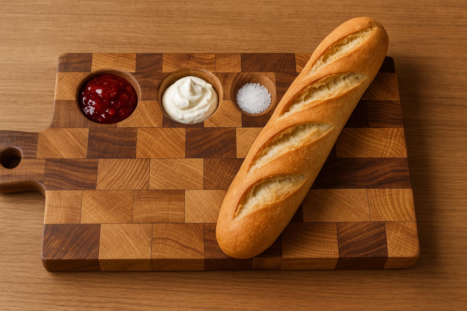 surface. This material can be shaped into various boards, with carved spaces for dips or small bites to