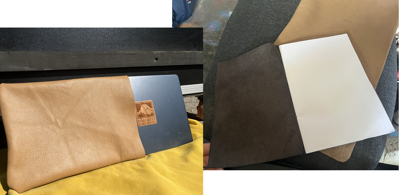 During our residency, we explored this concept by creating a range of prototypes, including a hand-stitched laptop sleeve and a refined notebook, both crafted using repurposed leather sourced from furniture production. These examples demonstrate how waste materials can be transformed into desirable, durable objects that fit seamlessly into modern life.