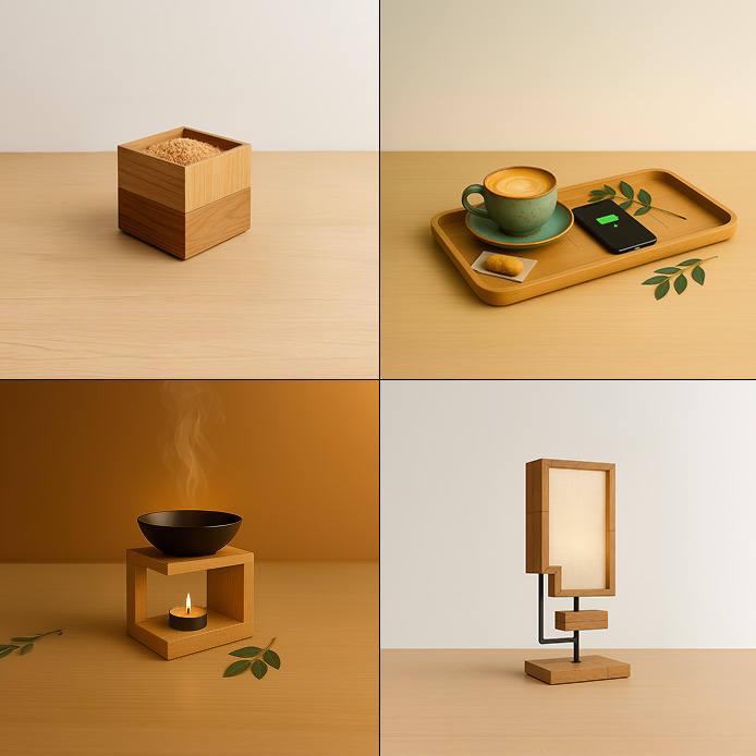 • A giftable wooden box filled with aromatic wood dust, made from wood offcuts and sawdust