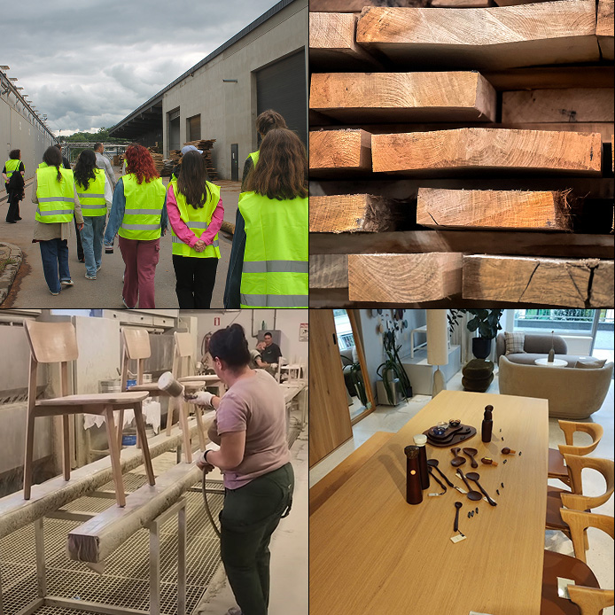 The residency kicked off with a group visit to the GIR factory, an established furniture manufacturer based in Kraljevo. In this case study, our main focus was to identify the different stages at which wood residues are produced, observe how some of them are currently managed, and explore how they could be further reused. We gained insights into the entire production process, while also getting to know the people and the machines involved in furniture making.