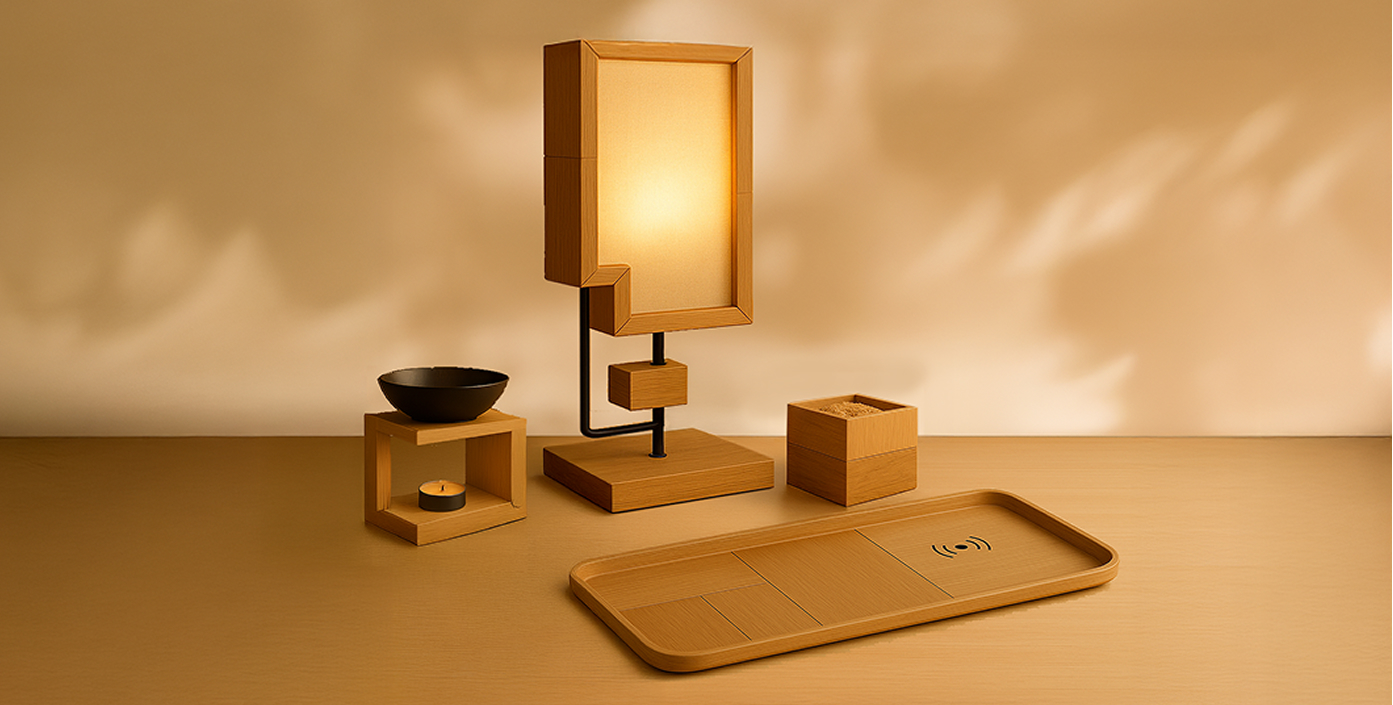Over the course of four days, and as part of the NextGenDesign x Mikser festival, our team developed a collection of immersive, upcycled design concepts that merge the warmth and tactility of traditional woodworking with elements of modern technology and high-end sensory experience.