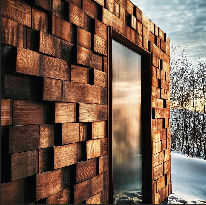 This project proposes a compact sauna whose exterior is built from GIR’s own hardwood offcuts – turning internal waste into architecture and expanding the new subbrand beyond furniture.